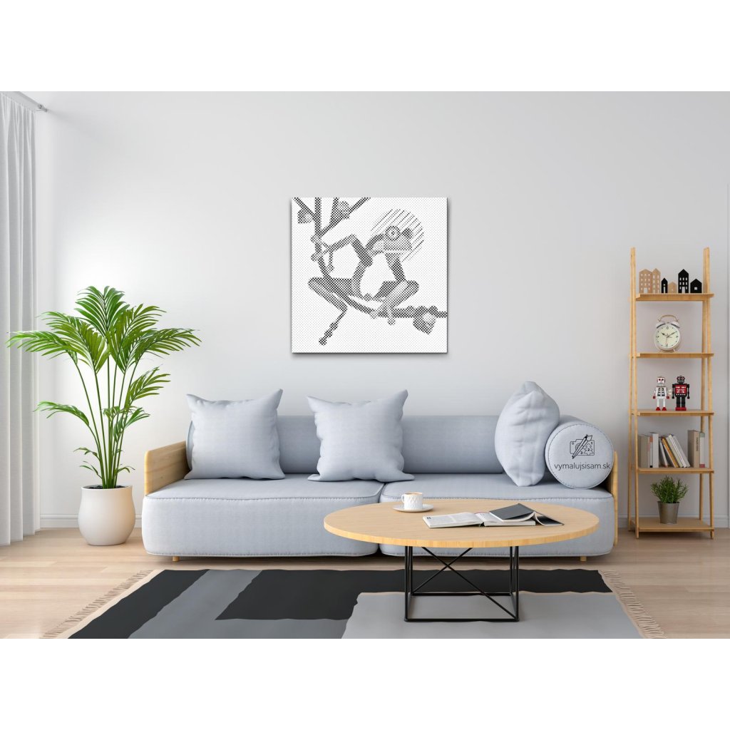 Hlavná úloha spočíva vo vypĺňaní koliesok rôznych veľkostí, predtlačených na plátne, farebnou fixkou. U niektorých stačí urobiť malú bodku, u väčších koliesok je skôr potrebné vyfarbovať. Chce to trochu trpezlivosti, ale keď sa vám stovky malých bodiek začnú pred očami premieňať na zvolený motív, budete mať chuť začať skákať od radosti. Keď urobíte poslednú bodku za svojím dielom, môžete obdivovať fotku premenenú na dvojfarebnú nádheru a rovno si ju zavesiť na stenu (ak si zvolíte obraz s vnútorným rámom).