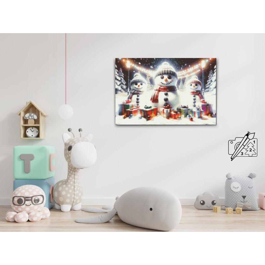 Diamantovanie podľa čísiel - Snehuliaci s darčekmi