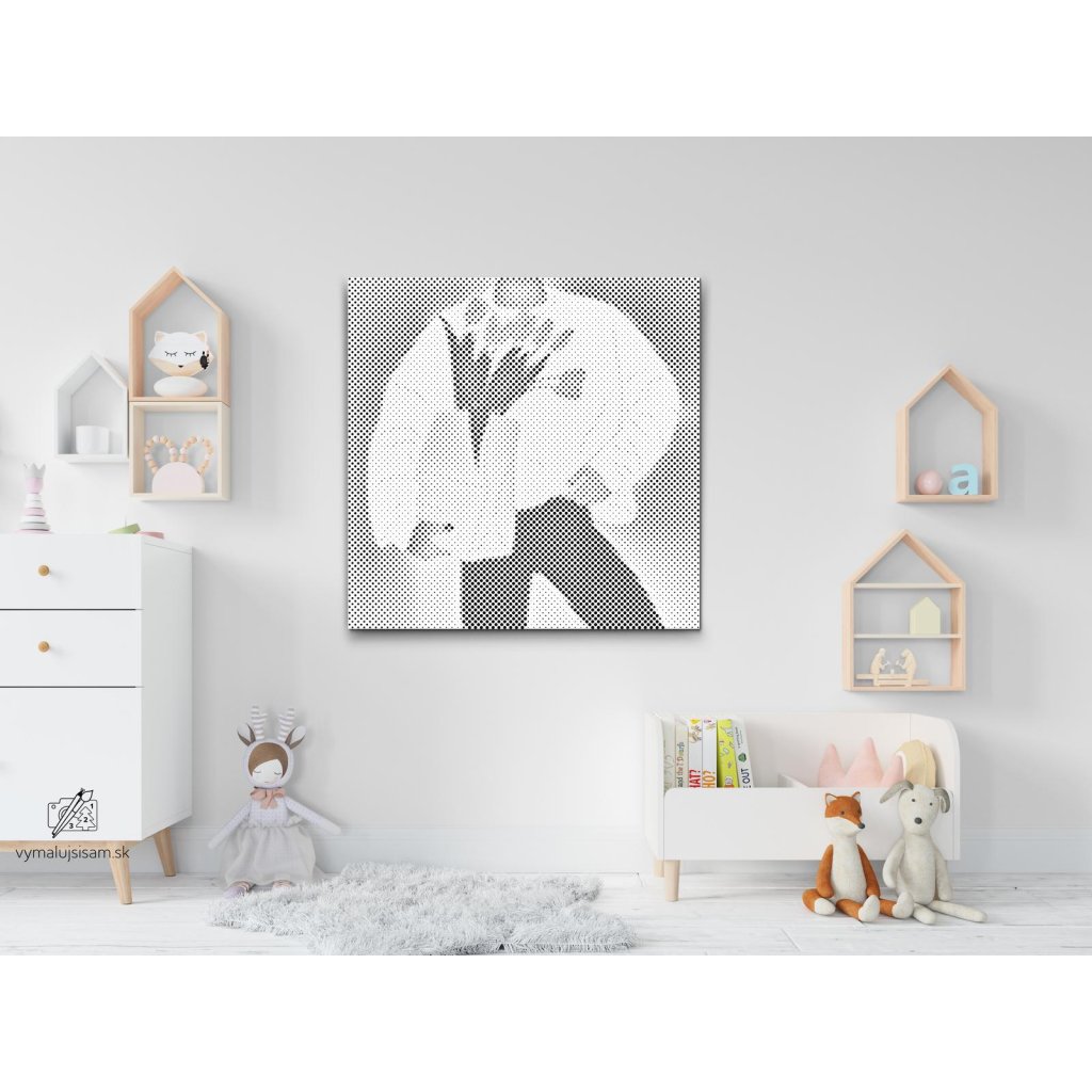 Hlavná úloha spočíva vo vypĺňaní koliesok rôznych veľkostí, predtlačených na plátne, farebnou fixkou. U niektorých stačí urobiť malú bodku, u väčších koliesok je skôr potrebné vyfarbovať. Chce to trochu trpezlivosti, ale keď sa vám stovky malých bodiek začnú pred očami premieňať na zvolený motív, budete mať chuť začať skákať od radosti. Keď urobíte poslednú bodku za svojím dielom, môžete obdivovať fotku premenenú na dvojfarebnú nádheru a rovno si ju zavesiť na stenu (ak si zvolíte obraz s vnútorným rámom).