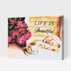 Maľovanie podľa čísiel - Kvetiny a hrnček kávy