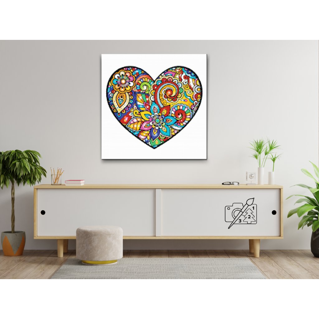 Na plátno budete ukladať malé plastové diamanty s priemerom 2,8 mm. Od nás dostanete všetky potrebné farby špeciálne pre váš obraz, rozdelené do vrecúšok. Odtieňov rôznych farieb sú stovky až tisíce, vďaka čomu je výsledný obraz prakticky dokonalý. Každé vrecúško obsahuje jednu konkrétnu farbu/odtieň a je označené číslom alebo symbolom. Celé plátno pokrývajú stovky symbolov, na ktoré budete ukladať farebné diamanty zodpovedajúce svojím označením danému číslu alebo symbolu. Nemusíte sa báť, že by ste diamantov mali málo. Množstvo vo vrecúšku je veľkorysé a z každého odtieňa budete mať dostatočnú rezervu.