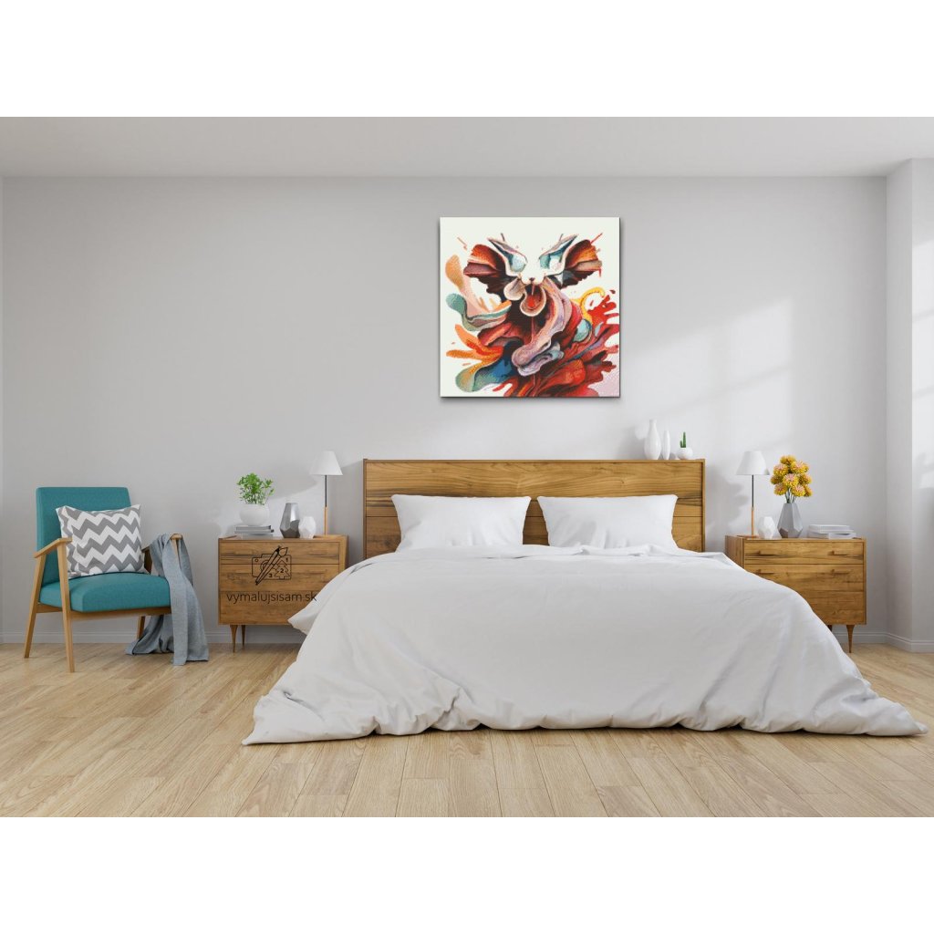 Na plátno budete ukladať malé plastové diamanty s priemerom 2,8 mm. Od nás dostanete všetky potrebné farby špeciálne pre váš obraz, rozdelené do vrecúšok. Odtieňov rôznych farieb sú stovky až tisíce, vďaka čomu je výsledný obraz prakticky dokonalý. Každé vrecúško obsahuje jednu konkrétnu farbu/odtieň a je označené číslom alebo symbolom. Celé plátno pokrývajú stovky symbolov, na ktoré budete ukladať farebné diamanty zodpovedajúce svojím označením danému číslu alebo symbolu. Nemusíte sa báť, že by ste diamantov mali málo. Množstvo vo vrecúšku je veľkorysé a z každého odtieňa budete mať dostatočnú rezervu.