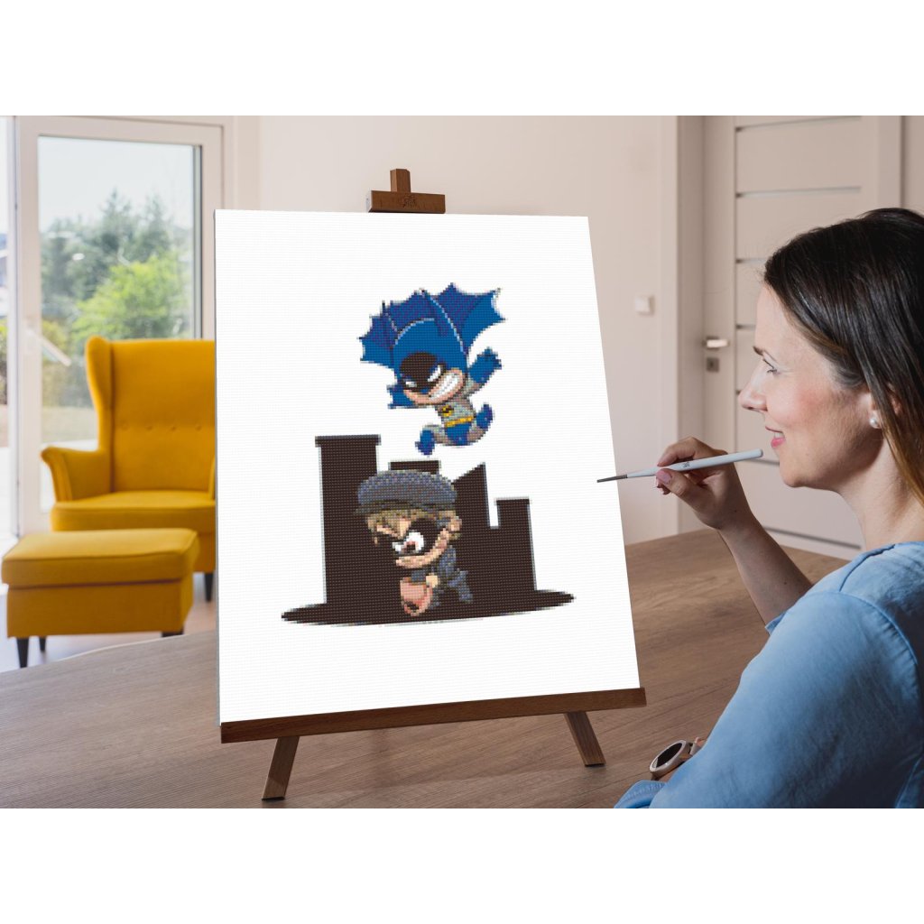 Princíp je ľahký: vybraný motív dostanete predtlačený na lepkavom plátne a vašou úlohou bude vyplniť všetky farebné symboly diamantmi so zodpovedajúcim označením. Pri tom vám pomôže diamantovacie pero, ktoré po ponorení do lepivej hmoty udrží vo svojej špičke jeden až tri diamanty naraz. V súprave dostanete tiež mištičku na naberanie diamantov, grafickú predlohu a podrobný návod. Ste pripravení vrhnúť sa do ligotavého sveta zábavy?