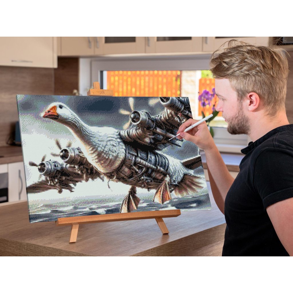 Princíp je ľahký: vybraný motív dostanete predtlačený na lepkavom plátne a vašou úlohou bude vyplniť všetky farebné symboly diamantmi so zodpovedajúcim označením. Pri tom vám pomôže diamantovacie pero, ktoré po ponorení do lepivej hmoty udrží vo svojej špičke jeden až tri diamanty naraz. V súprave dostanete tiež mištičku na naberanie diamantov, grafickú predlohu a podrobný návod. Ste pripravení vrhnúť sa do ligotavého sveta zábavy?