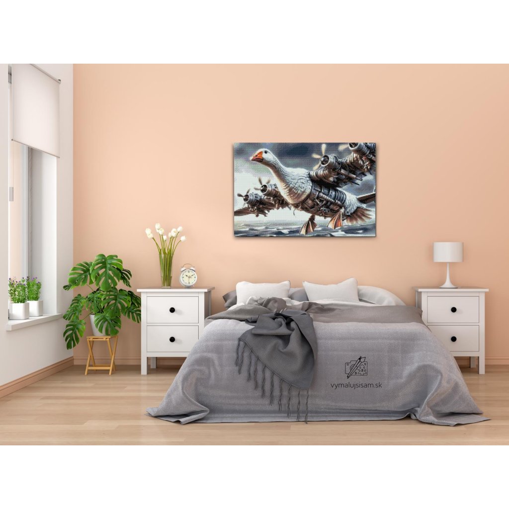 Na plátno budete ukladať malé plastové diamanty s priemerom 2,8 mm. Od nás dostanete všetky potrebné farby špeciálne pre váš obraz, rozdelené do vrecúšok. Odtieňov rôznych farieb sú stovky až tisíce, vďaka čomu je výsledný obraz prakticky dokonalý. Každé vrecúško obsahuje jednu konkrétnu farbu/odtieň a je označené číslom alebo symbolom. Celé plátno pokrývajú stovky symbolov, na ktoré budete ukladať farebné diamanty zodpovedajúce svojím označením danému číslu alebo symbolu. Nemusíte sa báť, že by ste diamantov mali málo. Množstvo vo vrecúšku je veľkorysé a z každého odtieňa budete mať dostatočnú rezervu.