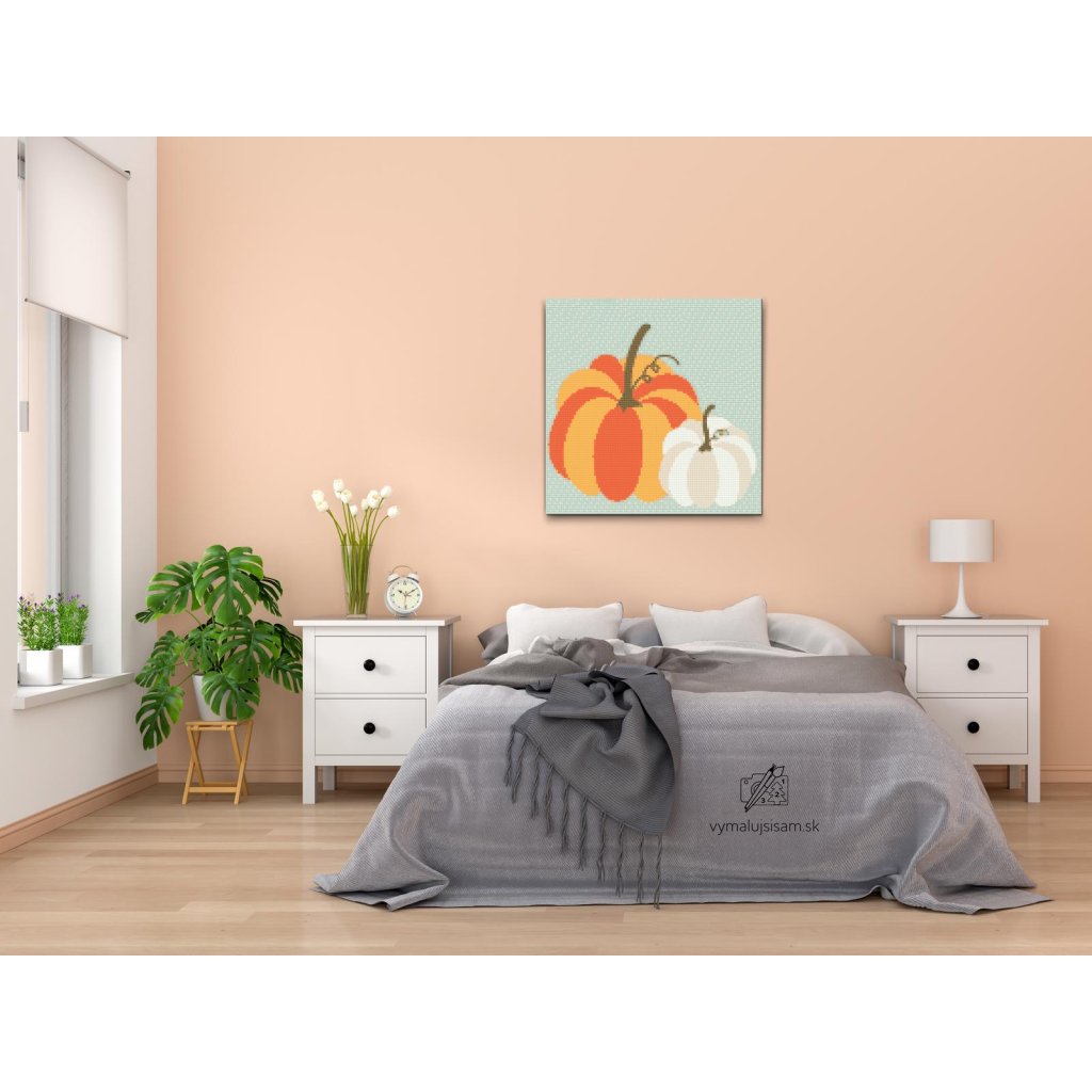 Diamantové maľovanie - Dve pastelové tekvice