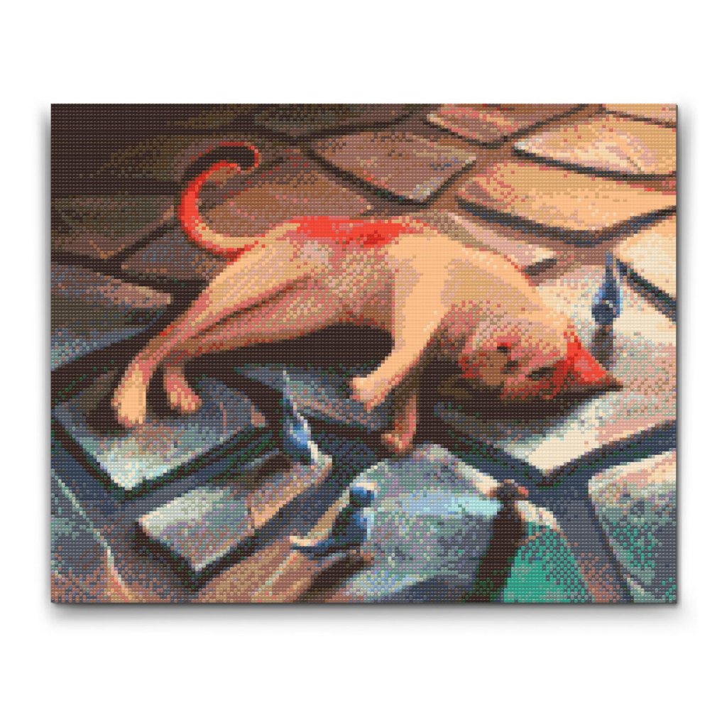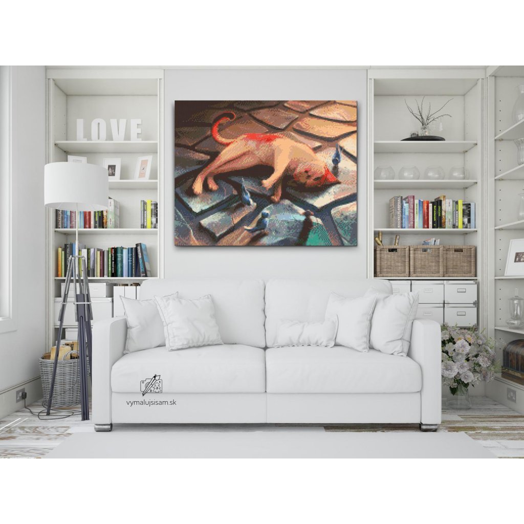 Na plátno budete ukladať malé plastové diamanty s priemerom 2,8 mm. Od nás dostanete všetky potrebné farby špeciálne pre váš obraz, rozdelené do vrecúšok. Odtieňov rôznych farieb sú stovky až tisíce, vďaka čomu je výsledný obraz prakticky dokonalý. Každé vrecúško obsahuje jednu konkrétnu farbu/odtieň a je označené číslom alebo symbolom. Celé plátno pokrývajú stovky symbolov, na ktoré budete ukladať farebné diamanty zodpovedajúce svojím označením danému číslu alebo symbolu. Nemusíte sa báť, že by ste diamantov mali málo. Množstvo vo vrecúšku je veľkorysé a z každého odtieňa budete mať dostatočnú rezervu.