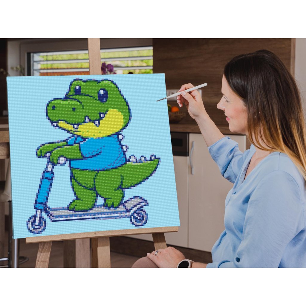 Princíp je ľahký: vybraný motív dostanete predtlačený na lepkavom plátne a vašou úlohou bude vyplniť všetky farebné symboly diamantmi so zodpovedajúcim označením. Pri tom vám pomôže diamantovacie pero, ktoré po ponorení do lepivej hmoty udrží vo svojej špičke jeden až tri diamanty naraz. V súprave dostanete tiež mištičku na naberanie diamantov, grafickú predlohu a podrobný návod. Ste pripravení vrhnúť sa do ligotavého sveta zábavy?
