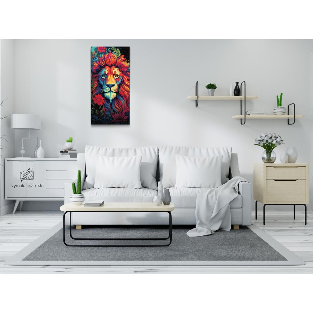 Diamantové maľovanie - Lev v kvetoch