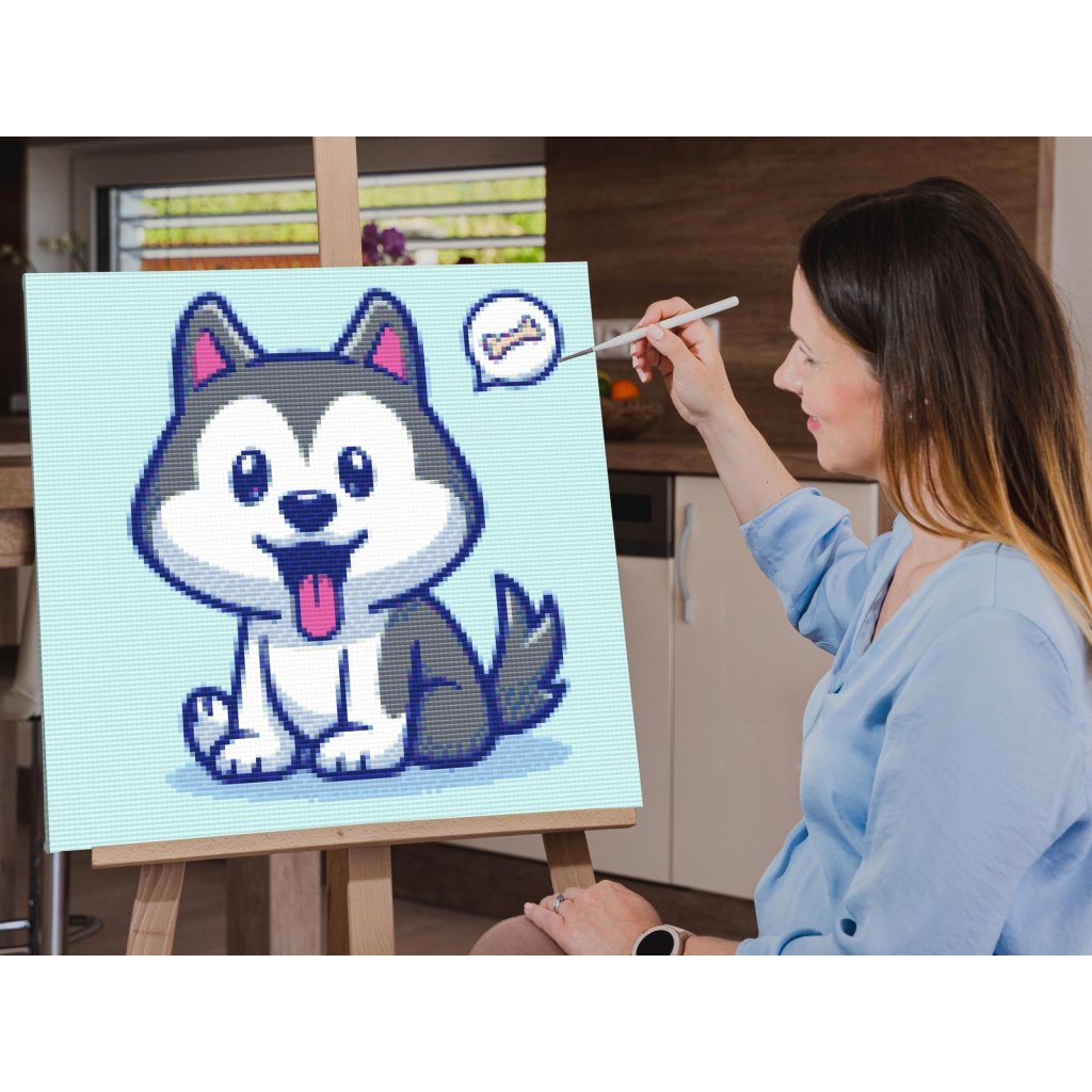 Princíp je ľahký: vybraný motív dostanete predtlačený na lepkavom plátne a vašou úlohou bude vyplniť všetky farebné symboly diamantmi so zodpovedajúcim označením. Pri tom vám pomôže diamantovacie pero, ktoré po ponorení do lepivej hmoty udrží vo svojej špičke jeden až tri diamanty naraz. V súprave dostanete tiež mištičku na naberanie diamantov, grafickú predlohu a podrobný návod. Ste pripravení vrhnúť sa do ligotavého sveta zábavy?