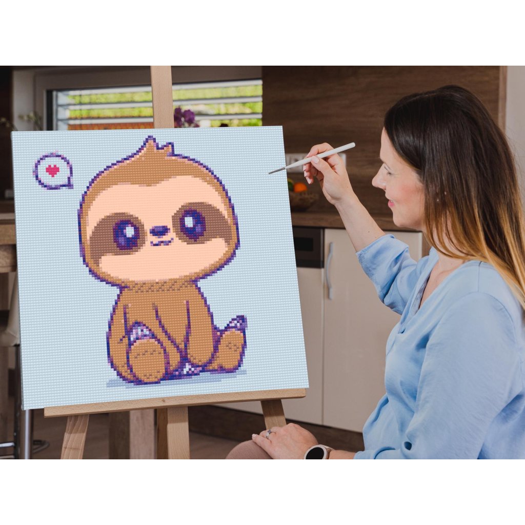 Princíp je ľahký: vybraný motív dostanete predtlačený na lepkavom plátne a vašou úlohou bude vyplniť všetky farebné symboly diamantmi so zodpovedajúcim označením. Pri tom vám pomôže diamantovacie pero, ktoré po ponorení do lepivej hmoty udrží vo svojej špičke jeden až tri diamanty naraz. V súprave dostanete tiež mištičku na naberanie diamantov, grafickú predlohu a podrobný návod. Ste pripravení vrhnúť sa do ligotavého sveta zábavy?