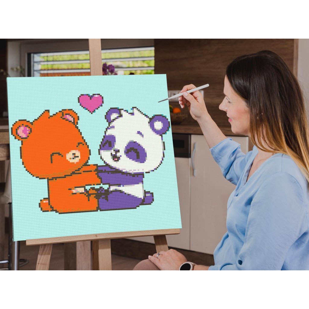 Princíp je ľahký: vybraný motív dostanete predtlačený na lepkavom plátne a vašou úlohou bude vyplniť všetky farebné symboly diamantmi so zodpovedajúcim označením. Pri tom vám pomôže diamantovacie pero, ktoré po ponorení do lepivej hmoty udrží vo svojej špičke jeden až tri diamanty naraz. V súprave dostanete tiež mištičku na naberanie diamantov, grafickú predlohu a podrobný návod. Ste pripravení vrhnúť sa do ligotavého sveta zábavy?