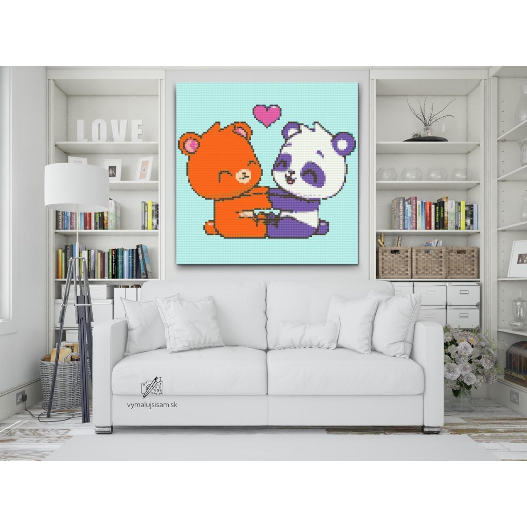 Na plátno budete ukladať malé plastové diamanty s priemerom 2,8 mm. Od nás dostanete všetky potrebné farby špeciálne pre váš obraz, rozdelené do vrecúšok. Odtieňov rôznych farieb sú stovky až tisíce, vďaka čomu je výsledný obraz prakticky dokonalý. Každé vrecúško obsahuje jednu konkrétnu farbu/odtieň a je označené číslom alebo symbolom. Celé plátno pokrývajú stovky symbolov, na ktoré budete ukladať farebné diamanty zodpovedajúce svojím označením danému číslu alebo symbolu. Nemusíte sa báť, že by ste diamantov mali málo. Množstvo vo vrecúšku je veľkorysé a z každého odtieňa budete mať dostatočnú rezervu.