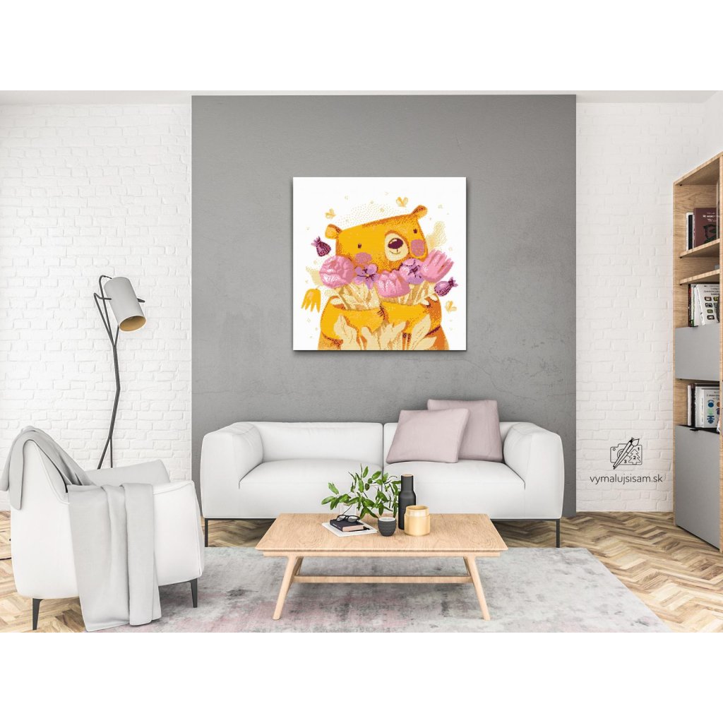 Na plátno budete ukladať malé plastové diamanty s priemerom 2,8 mm. Od nás dostanete všetky potrebné farby špeciálne pre váš obraz, rozdelené do vrecúšok. Odtieňov rôznych farieb sú stovky až tisíce, vďaka čomu je výsledný obraz prakticky dokonalý. Každé vrecúško obsahuje jednu konkrétnu farbu/odtieň a je označené číslom alebo symbolom. Celé plátno pokrývajú stovky symbolov, na ktoré budete ukladať farebné diamanty zodpovedajúce svojím označením danému číslu alebo symbolu. Nemusíte sa báť, že by ste diamantov mali málo. Množstvo vo vrecúšku je veľkorysé a z každého odtieňa budete mať dostatočnú rezervu.