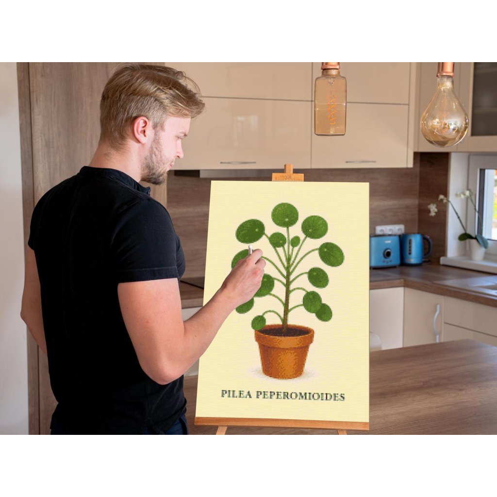 Diamantové maľovanie - Penízkovka (Pilea peperomioides)