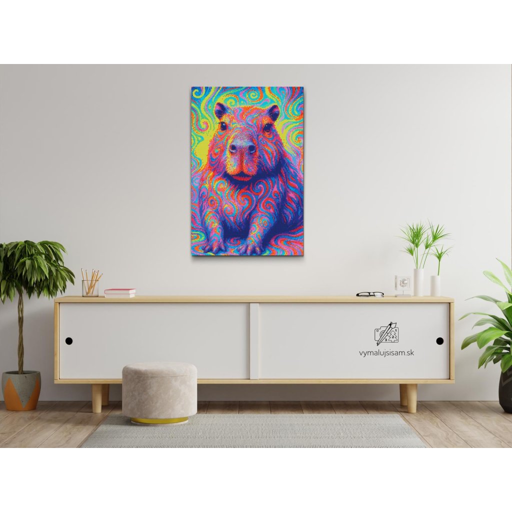 Na plátno budete ukladať malé plastové diamanty s priemerom 2,8 mm. Od nás dostanete všetky potrebné farby špeciálne pre váš obraz, rozdelené do vrecúšok. Odtieňov rôznych farieb sú stovky až tisíce, vďaka čomu je výsledný obraz prakticky dokonalý. Každé vrecúško obsahuje jednu konkrétnu farbu/odtieň a je označené číslom alebo symbolom. Celé plátno pokrývajú stovky symbolov, na ktoré budete ukladať farebné diamanty zodpovedajúce svojím označením danému číslu alebo symbolu. Nemusíte sa báť, že by ste diamantov mali málo. Množstvo vo vrecúšku je veľkorysé a z každého odtieňa budete mať dostatočnú rezervu.