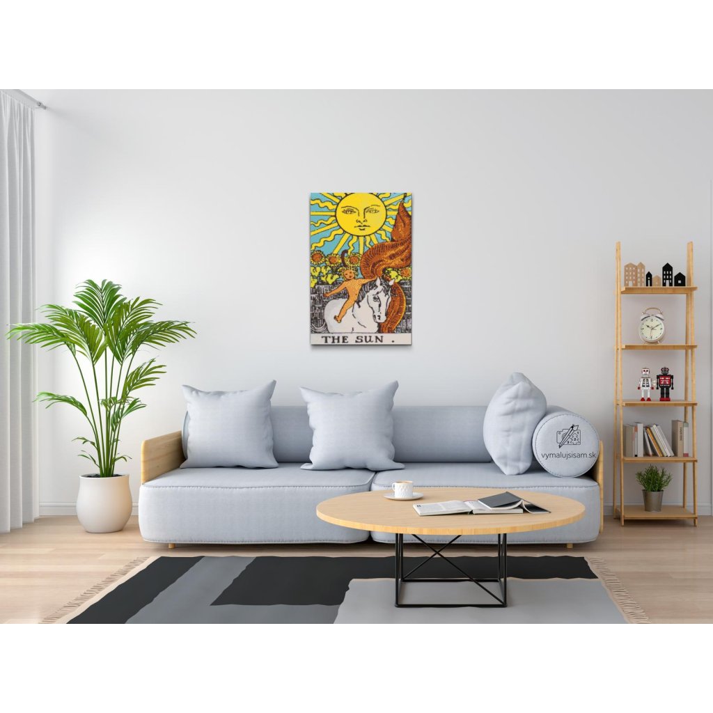 Na plátno budete ukladať malé plastové diamanty s priemerom 2,8 mm. Od nás dostanete všetky potrebné farby špeciálne pre váš obraz, rozdelené do vrecúšok. Odtieňov rôznych farieb sú stovky až tisíce, vďaka čomu je výsledný obraz prakticky dokonalý. Každé vrecúško obsahuje jednu konkrétnu farbu/odtieň a je označené číslom alebo symbolom. Celé plátno pokrývajú stovky symbolov, na ktoré budete ukladať farebné diamanty zodpovedajúce svojím označením danému číslu alebo symbolu. Nemusíte sa báť, že by ste diamantov mali málo. Množstvo vo vrecúšku je veľkorysé a z každého odtieňa budete mať dostatočnú rezervu.