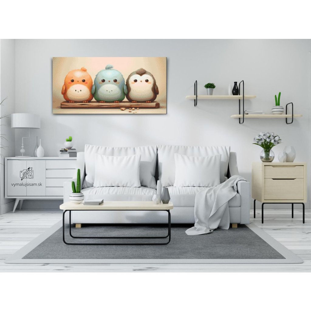 Na plátno budete ukladať malé plastové diamanty s priemerom 2,8 mm. Od nás dostanete všetky potrebné farby špeciálne pre váš obraz, rozdelené do vrecúšok. Odtieňov rôznych farieb sú stovky až tisíce, vďaka čomu je výsledný obraz prakticky dokonalý. Každé vrecúško obsahuje jednu konkrétnu farbu/odtieň a je označené číslom alebo symbolom. Celé plátno pokrývajú stovky symbolov, na ktoré budete ukladať farebné diamanty zodpovedajúce svojím označením danému číslu alebo symbolu. Nemusíte sa báť, že by ste diamantov mali málo. Množstvo vo vrecúšku je veľkorysé a z každého odtieňa budete mať dostatočnú rezervu.