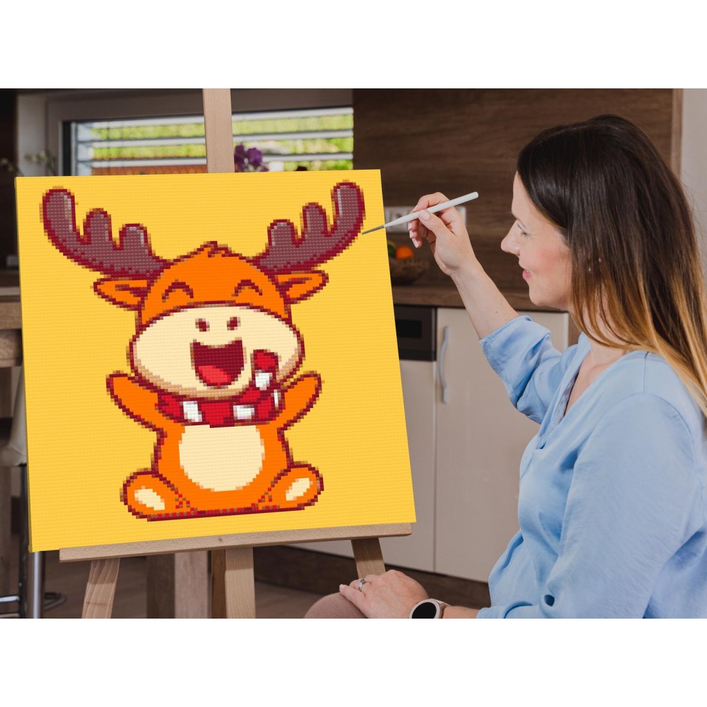 Princíp je ľahký: vybraný motív dostanete predtlačený na lepkavom plátne a vašou úlohou bude vyplniť všetky farebné symboly diamantmi so zodpovedajúcim označením. Pri tom vám pomôže diamantovacie pero, ktoré po ponorení do lepivej hmoty udrží vo svojej špičke jeden až tri diamanty naraz. V súprave dostanete tiež mištičku na naberanie diamantov, grafickú predlohu a podrobný návod. Ste pripravení vrhnúť sa do ligotavého sveta zábavy?