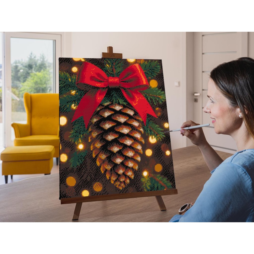 Princíp je ľahký: vybraný motív dostanete predtlačený na lepkavom plátne a vašou úlohou bude vyplniť všetky farebné symboly diamantmi so zodpovedajúcim označením. Pri tom vám pomôže diamantovacie pero, ktoré po ponorení do lepivej hmoty udrží vo svojej špičke jeden až tri diamanty naraz. V súprave dostanete tiež mištičku na naberanie diamantov, grafickú predlohu a podrobný návod. Ste pripravení vrhnúť sa do ligotavého sveta zábavy?