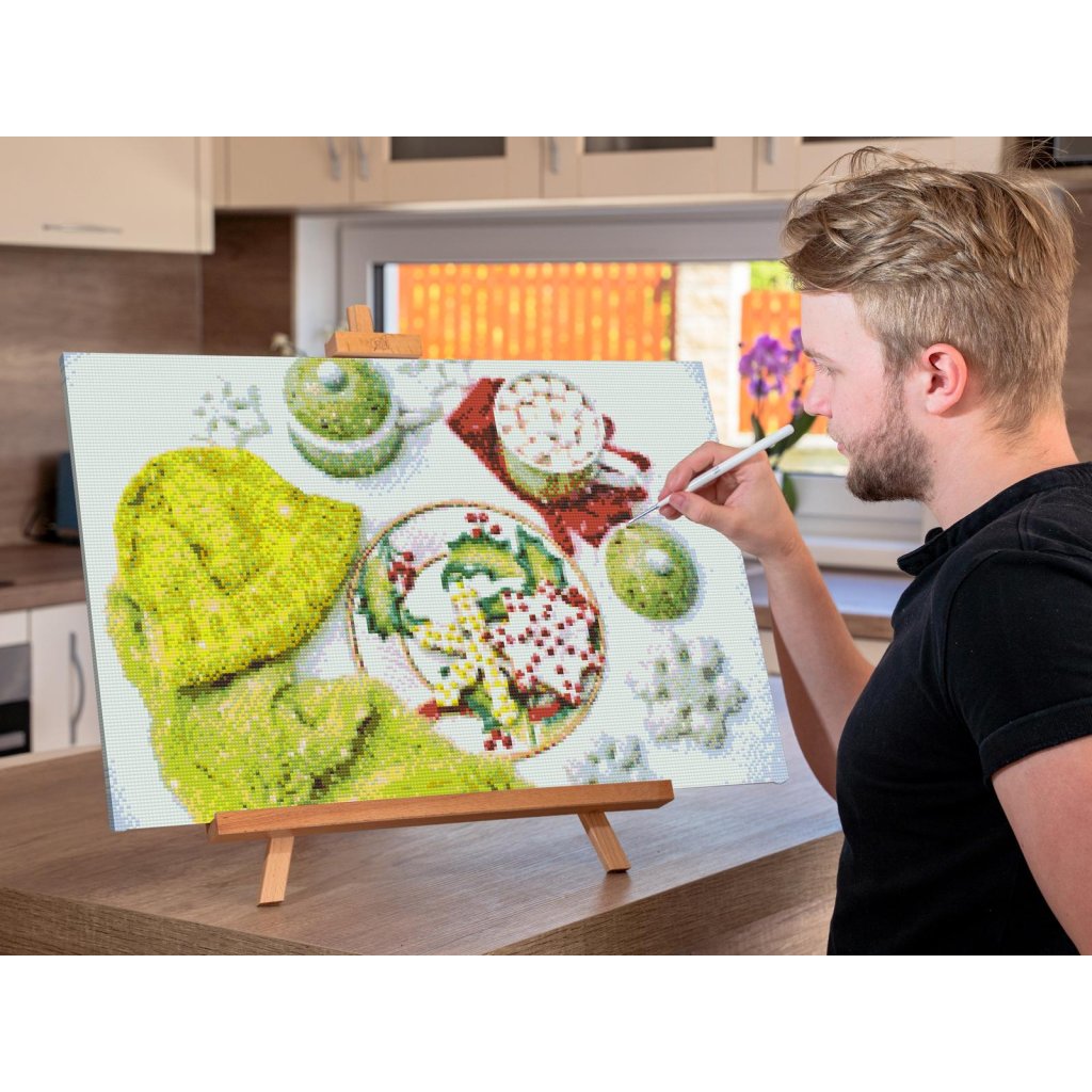 Princíp je ľahký: vybraný motív dostanete predtlačený na lepkavom plátne a vašou úlohou bude vyplniť všetky farebné symboly diamantmi so zodpovedajúcim označením. Pri tom vám pomôže diamantovacie pero, ktoré po ponorení do lepivej hmoty udrží vo svojej špičke jeden až tri diamanty naraz. V súprave dostanete tiež mištičku na naberanie diamantov, grafickú predlohu a podrobný návod. Ste pripravení vrhnúť sa do ligotavého sveta zábavy?