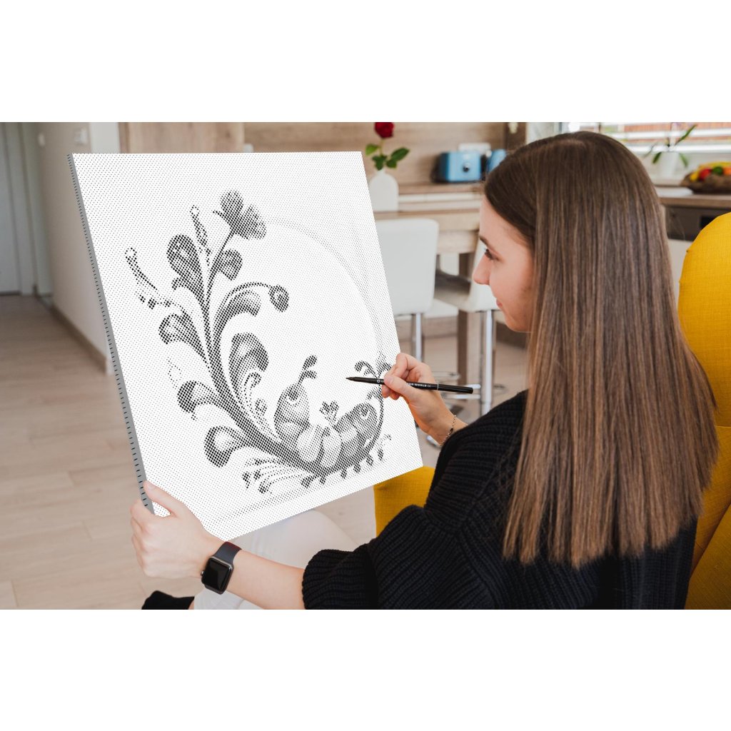 Bodkovanie je zatiaľ našou najjednoduchšou umeleckou aktivitou, takže ho zvládnu aj tie najmenšie deti. Zároveň ide o unikátny produkt, ktorý si rýchlo získa aj dospelých. Proces vyfarbovania prináša absolútny relax, pretože sa pri ňom nemusíte sústrediť na žiadny zložitý systém. Môžete si tak vychutnávať len uvoľňujúcu prácu s fixkou putujúcou po plátne. A výsledok stojí za to! Pustíte sa s nami do bodkovania?
