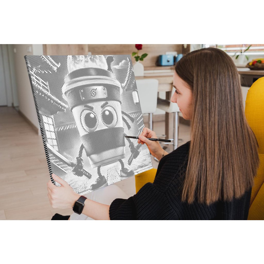 Hlavná úloha spočíva vo vypĺňaní koliesok rôznych veľkostí, predtlačených na plátne, farebnou fixkou. U niektorých stačí urobiť malú bodku, u väčších koliesok je skôr potrebné vyfarbovať. Chce to trochu trpezlivosti, ale keď sa vám stovky malých bodiek začnú pred očami premieňať na zvolený motív, budete mať chuť začať skákať od radosti. Keď urobíte poslednú bodku za svojím dielom, môžete obdivovať fotku premenenú na dvojfarebnú nádheru a rovno si ju zavesiť na stenu (ak si zvolíte obraz s vnútorným rámom).