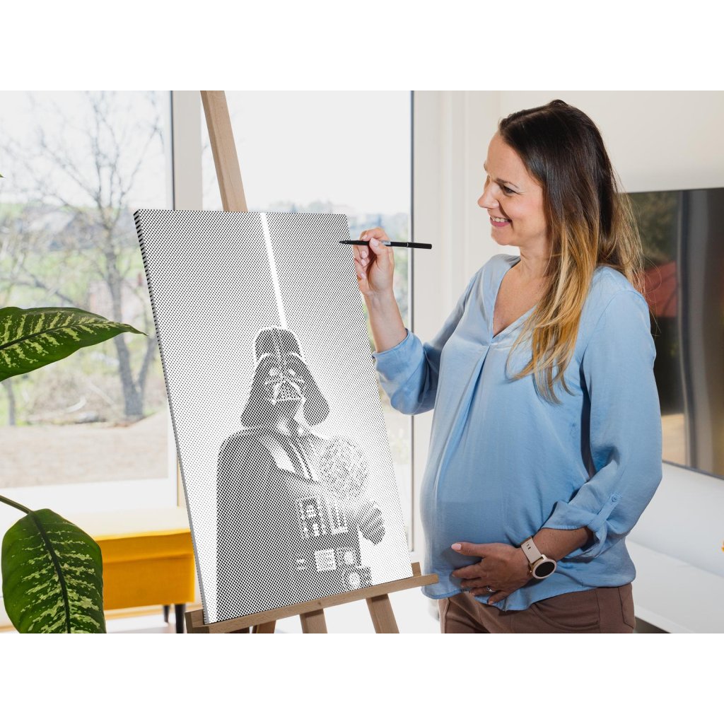 Hlavná úloha spočíva vo vypĺňaní koliesok rôznych veľkostí, predtlačených na plátne, farebnou fixkou. U niektorých stačí urobiť malú bodku, u väčších koliesok je skôr potrebné vyfarbovať. Chce to trochu trpezlivosti, ale keď sa vám stovky malých bodiek začnú pred očami premieňať na zvolený motív, budete mať chuť začať skákať od radosti. Keď urobíte poslednú bodku za svojím dielom, môžete obdivovať fotku premenenú na dvojfarebnú nádheru a rovno si ju zavesiť na stenu (ak si zvolíte obraz s vnútorným rámom).