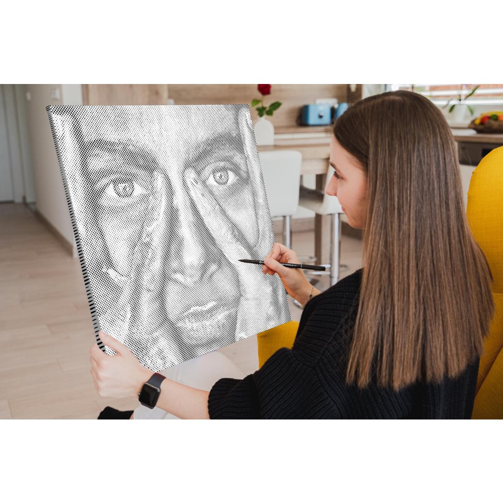 Hlavná úloha spočíva vo vypĺňaní koliesok rôznych veľkostí, predtlačených na plátne, farebnou fixkou. U niektorých stačí urobiť malú bodku, u väčších koliesok je skôr potrebné vyfarbovať. Chce to trochu trpezlivosti, ale keď sa vám stovky malých bodiek začnú pred očami premieňať na zvolený motív, budete mať chuť začať skákať od radosti. Keď urobíte poslednú bodku za svojím dielom, môžete obdivovať fotku premenenú na dvojfarebnú nádheru a rovno si ju zavesiť na stenu (ak si zvolíte obraz s vnútorným rámom).