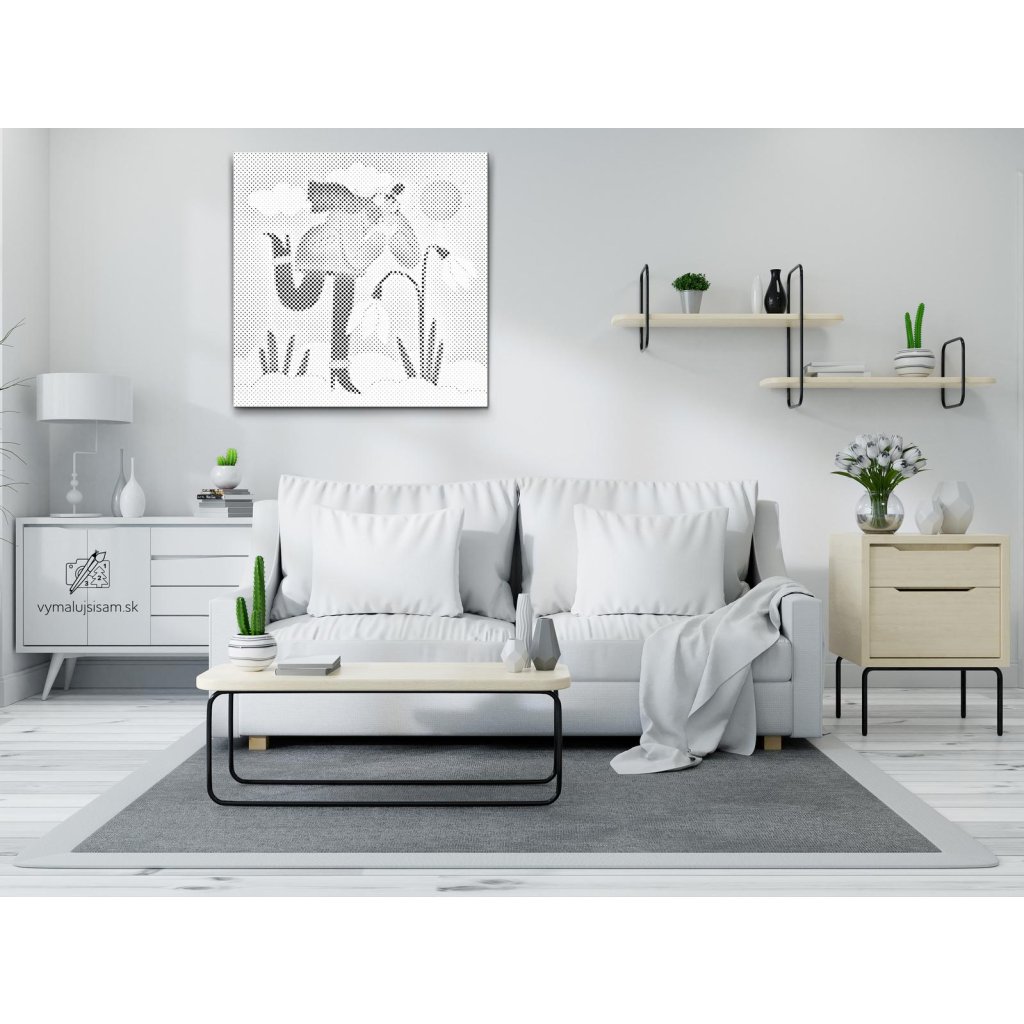 Hlavná úloha spočíva vo vypĺňaní koliesok rôznych veľkostí, predtlačených na plátne, farebnou fixkou. U niektorých stačí urobiť malú bodku, u väčších koliesok je skôr potrebné vyfarbovať. Chce to trochu trpezlivosti, ale keď sa vám stovky malých bodiek začnú pred očami premieňať na zvolený motív, budete mať chuť začať skákať od radosti. Keď urobíte poslednú bodku za svojím dielom, môžete obdivovať fotku premenenú na dvojfarebnú nádheru a rovno si ju zavesiť na stenu (ak si zvolíte obraz s vnútorným rámom).
