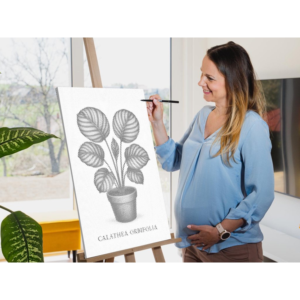 Hlavná úloha spočíva vo vypĺňaní koliesok rôznych veľkostí, predtlačených na plátne, farebnou fixkou. U niektorých stačí urobiť malú bodku, u väčších koliesok je skôr potrebné vyfarbovať. Chce to trochu trpezlivosti, ale keď sa vám stovky malých bodiek začnú pred očami premieňať na zvolený motív, budete mať chuť začať skákať od radosti. Keď urobíte poslednú bodku za svojím dielom, môžete obdivovať fotku premenenú na dvojfarebnú nádheru a rovno si ju zavesiť na stenu (ak si zvolíte obraz s vnútorným rámom).
