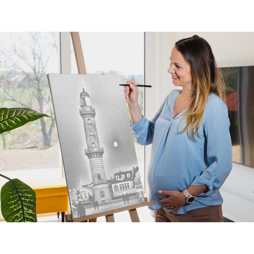 Hlavná úloha spočíva vo vypĺňaní koliesok rôznych veľkostí, predtlačených na plátne, farebnou fixkou. U niektorých stačí urobiť malú bodku, u väčších koliesok je skôr potrebné vyfarbovať. Chce to trochu trpezlivosti, ale keď sa vám stovky malých bodiek začnú pred očami premieňať na zvolený motív, budete mať chuť začať skákať od radosti. Keď urobíte poslednú bodku za svojím dielom, môžete obdivovať fotku premenenú na dvojfarebnú nádheru a rovno si ju zavesiť na stenu (ak si zvolíte obraz s vnútorným rámom).