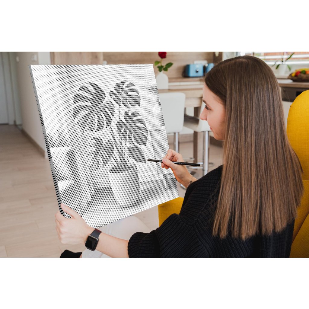 Hlavná úloha spočíva vo vypĺňaní koliesok rôznych veľkostí, predtlačených na plátne, farebnou fixkou. U niektorých stačí urobiť malú bodku, u väčších koliesok je skôr potrebné vyfarbovať. Chce to trochu trpezlivosti, ale keď sa vám stovky malých bodiek začnú pred očami premieňať na zvolený motív, budete mať chuť začať skákať od radosti. Keď urobíte poslednú bodku za svojím dielom, môžete obdivovať fotku premenenú na dvojfarebnú nádheru a rovno si ju zavesiť na stenu (ak si zvolíte obraz s vnútorným rámom).