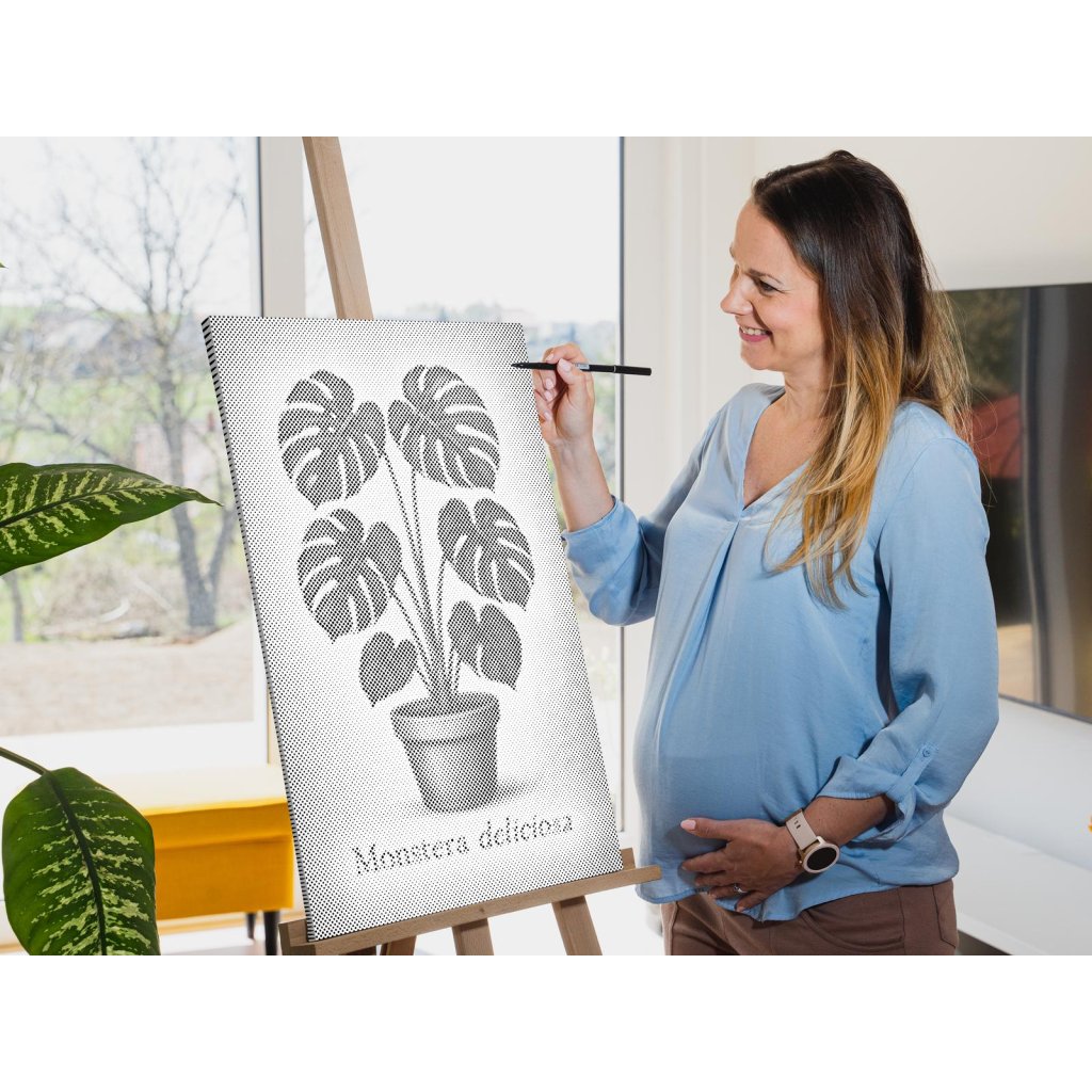 Hlavná úloha spočíva vo vypĺňaní koliesok rôznych veľkostí, predtlačených na plátne, farebnou fixkou. U niektorých stačí urobiť malú bodku, u väčších koliesok je skôr potrebné vyfarbovať. Chce to trochu trpezlivosti, ale keď sa vám stovky malých bodiek začnú pred očami premieňať na zvolený motív, budete mať chuť začať skákať od radosti. Keď urobíte poslednú bodku za svojím dielom, môžete obdivovať fotku premenenú na dvojfarebnú nádheru a rovno si ju zavesiť na stenu (ak si zvolíte obraz s vnútorným rámom).