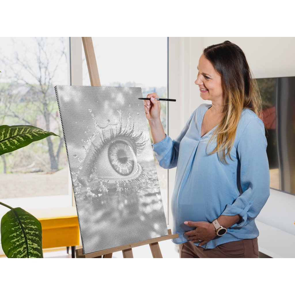 Hlavná úloha spočíva vo vypĺňaní koliesok rôznych veľkostí, predtlačených na plátne, farebnou fixkou. U niektorých stačí urobiť malú bodku, u väčších koliesok je skôr potrebné vyfarbovať. Chce to trochu trpezlivosti, ale keď sa vám stovky malých bodiek začnú pred očami premieňať na zvolený motív, budete mať chuť začať skákať od radosti. Keď urobíte poslednú bodku za svojím dielom, môžete obdivovať fotku premenenú na dvojfarebnú nádheru a rovno si ju zavesiť na stenu (ak si zvolíte obraz s vnútorným rámom).