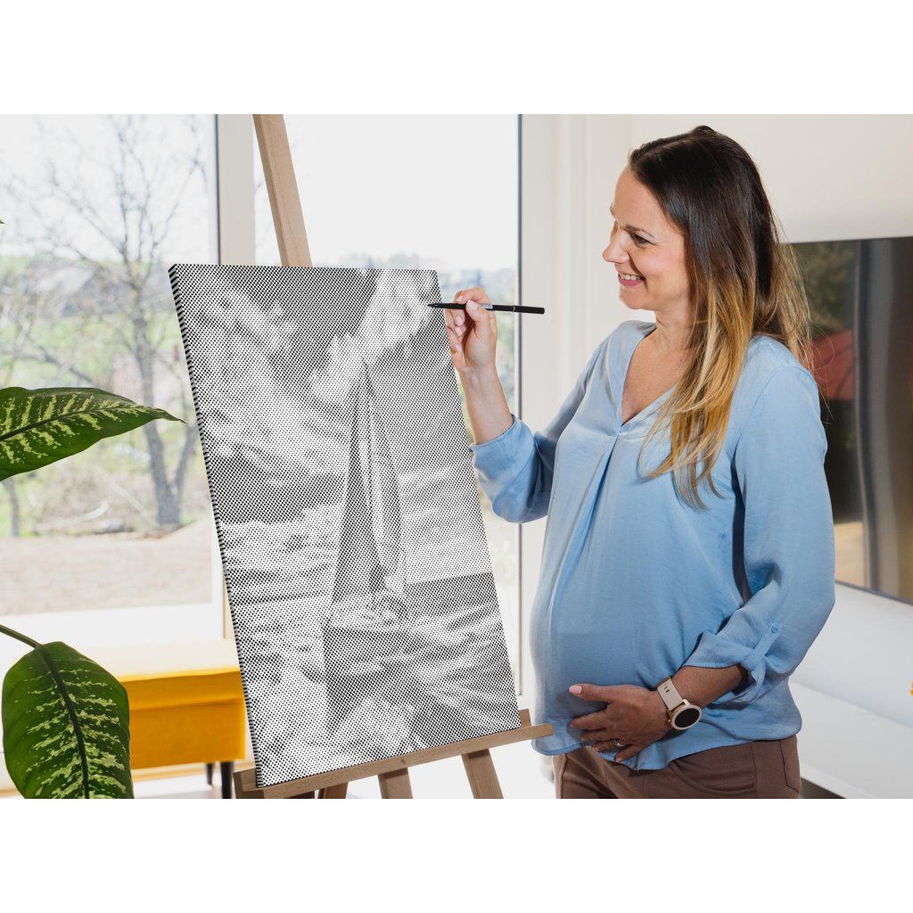Hlavná úloha spočíva vo vypĺňaní koliesok rôznych veľkostí, predtlačených na plátne, farebnou fixkou. U niektorých stačí urobiť malú bodku, u väčších koliesok je skôr potrebné vyfarbovať. Chce to trochu trpezlivosti, ale keď sa vám stovky malých bodiek začnú pred očami premieňať na zvolený motív, budete mať chuť začať skákať od radosti. Keď urobíte poslednú bodku za svojím dielom, môžete obdivovať fotku premenenú na dvojfarebnú nádheru a rovno si ju zavesiť na stenu (ak si zvolíte obraz s vnútorným rámom).