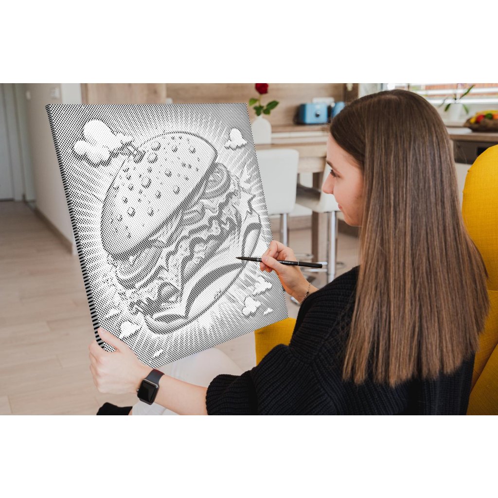 Bodkovanie je zatiaľ našou najjednoduchšou umeleckou aktivitou, takže ho zvládnu aj tie najmenšie deti. Zároveň ide o unikátny produkt, ktorý si rýchlo získa aj dospelých. Proces vyfarbovania prináša absolútny relax, pretože sa pri ňom nemusíte sústrediť na žiadny zložitý systém. Môžete si tak vychutnávať len uvoľňujúcu prácu s fixkou putujúcou po plátne. A výsledok stojí za to! Pustíte sa s nami do bodkovania?