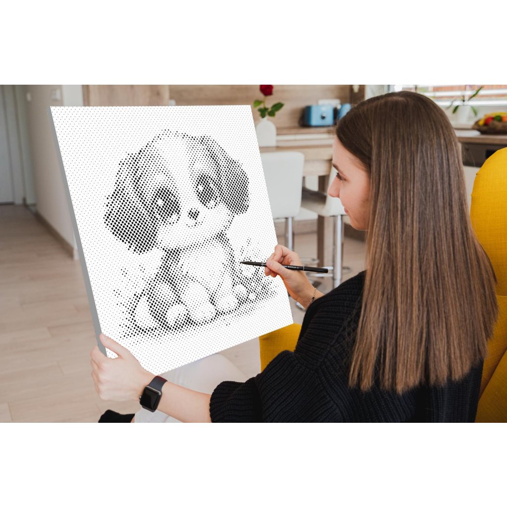 Bodkovanie je zatiaľ našou najjednoduchšou umeleckou aktivitou, takže ho zvládnu aj tie najmenšie deti. Zároveň ide o unikátny produkt, ktorý si rýchlo získa aj dospelých. Proces vyfarbovania prináša absolútny relax, pretože sa pri ňom nemusíte sústrediť na žiadny zložitý systém. Môžete si tak vychutnávať len uvoľňujúcu prácu s fixkou putujúcou po plátne. A výsledok stojí za to! Pustíte sa s nami do bodkovania?