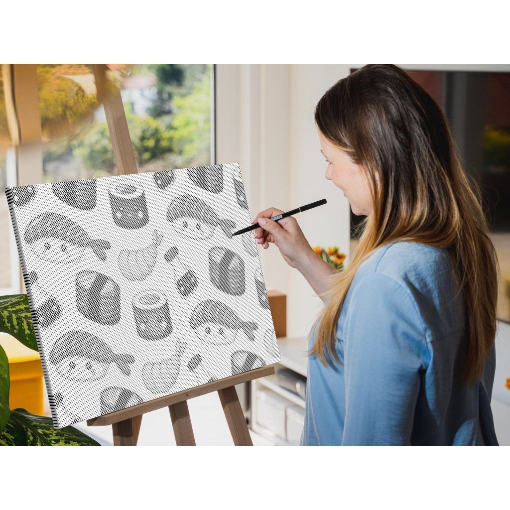 Hlavná úloha spočíva vo vypĺňaní koliesok rôznych veľkostí, predtlačených na plátne, farebnou fixkou. U niektorých stačí urobiť malú bodku, u väčších koliesok je skôr potrebné vyfarbovať. Chce to trochu trpezlivosti, ale keď sa vám stovky malých bodiek začnú pred očami premieňať na zvolený motív, budete mať chuť začať skákať od radosti. Keď urobíte poslednú bodku za svojím dielom, môžete obdivovať fotku premenenú na dvojfarebnú nádheru a rovno si ju zavesiť na stenu (ak si zvolíte obraz s vnútorným rámom).