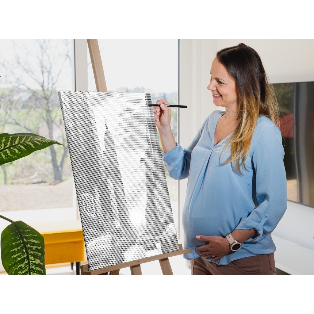 Hlavná úloha spočíva vo vypĺňaní koliesok rôznych veľkostí, predtlačených na plátne, farebnou fixkou. U niektorých stačí urobiť malú bodku, u väčších koliesok je skôr potrebné vyfarbovať. Chce to trochu trpezlivosti, ale keď sa vám stovky malých bodiek začnú pred očami premieňať na zvolený motív, budete mať chuť začať skákať od radosti. Keď urobíte poslednú bodku za svojím dielom, môžete obdivovať fotku premenenú na dvojfarebnú nádheru a rovno si ju zavesiť na stenu (ak si zvolíte obraz s vnútorným rámom).