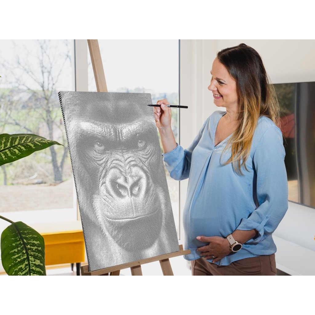 Hlavná úloha spočíva vo vypĺňaní koliesok rôznych veľkostí, predtlačených na plátne, farebnou fixkou. U niektorých stačí urobiť malú bodku, u väčších koliesok je skôr potrebné vyfarbovať. Chce to trochu trpezlivosti, ale keď sa vám stovky malých bodiek začnú pred očami premieňať na zvolený motív, budete mať chuť začať skákať od radosti. Keď urobíte poslednú bodku za svojím dielom, môžete obdivovať fotku premenenú na dvojfarebnú nádheru a rovno si ju zavesiť na stenu (ak si zvolíte obraz s vnútorným rámom).