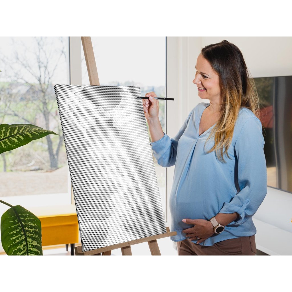 Hlavná úloha spočíva vo vypĺňaní koliesok rôznych veľkostí, predtlačených na plátne, farebnou fixkou. U niektorých stačí urobiť malú bodku, u väčších koliesok je skôr potrebné vyfarbovať. Chce to trochu trpezlivosti, ale keď sa vám stovky malých bodiek začnú pred očami premieňať na zvolený motív, budete mať chuť začať skákať od radosti. Keď urobíte poslednú bodku za svojím dielom, môžete obdivovať fotku premenenú na dvojfarebnú nádheru a rovno si ju zavesiť na stenu (ak si zvolíte obraz s vnútorným rámom).