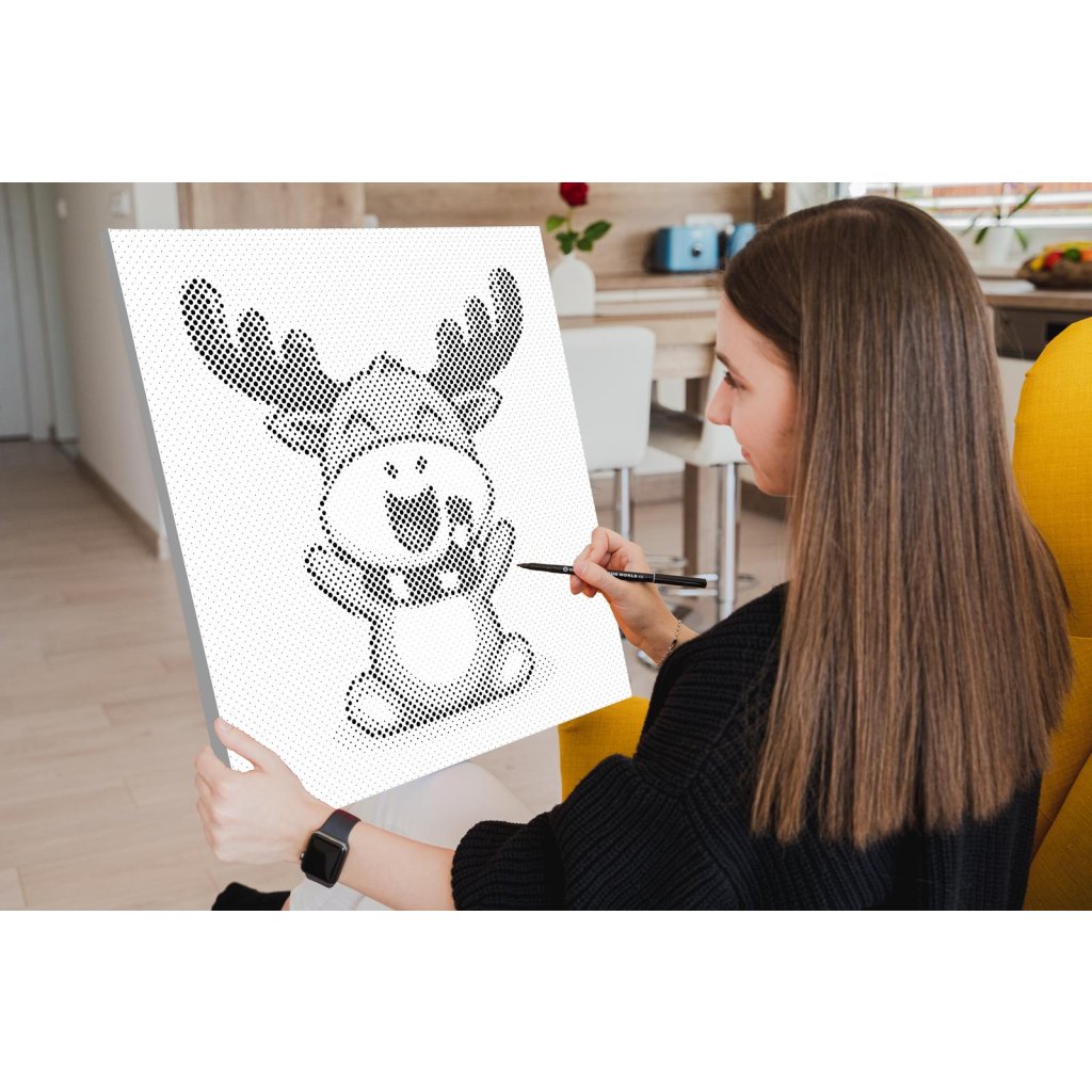 Bodkovanie je zatiaľ našou najjednoduchšou umeleckou aktivitou, takže ho zvládnu aj tie najmenšie deti. Zároveň ide o unikátny produkt, ktorý si rýchlo získa aj dospelých. Proces vyfarbovania prináša absolútny relax, pretože sa pri ňom nemusíte sústrediť na žiadny zložitý systém. Môžete si tak vychutnávať len uvoľňujúcu prácu s fixkou putujúcou po plátne. A výsledok stojí za to! Pustíte sa s nami do bodkovania?