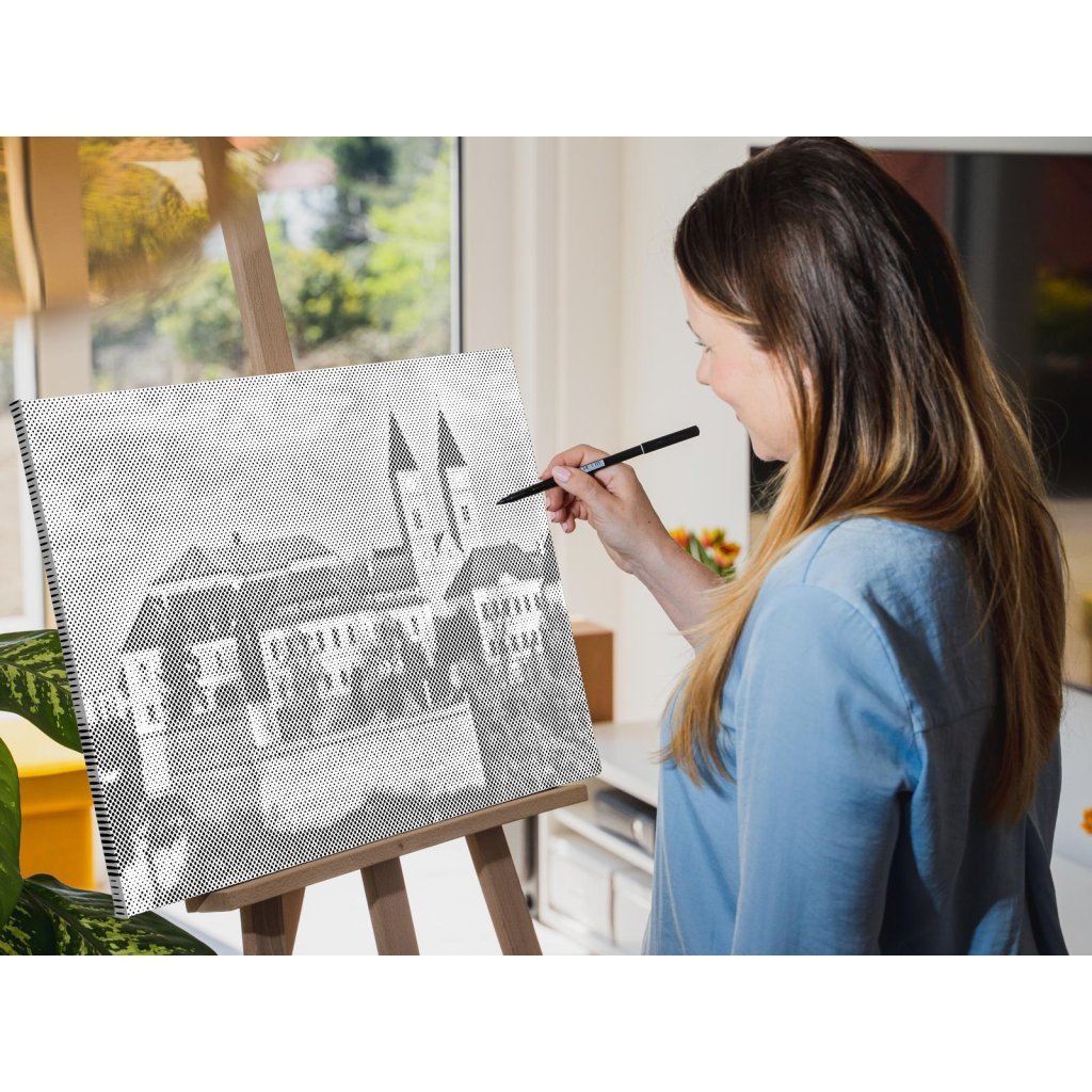 Hlavná úloha spočíva vo vypĺňaní koliesok rôznych veľkostí, predtlačených na plátne, farebnou fixkou. U niektorých stačí urobiť malú bodku, u väčších koliesok je skôr potrebné vyfarbovať. Chce to trochu trpezlivosti, ale keď sa vám stovky malých bodiek začnú pred očami premieňať na zvolený motív, budete mať chuť začať skákať od radosti. Keď urobíte poslednú bodku za svojím dielom, môžete obdivovať fotku premenenú na dvojfarebnú nádheru a rovno si ju zavesiť na stenu (ak si zvolíte obraz s vnútorným rámom).