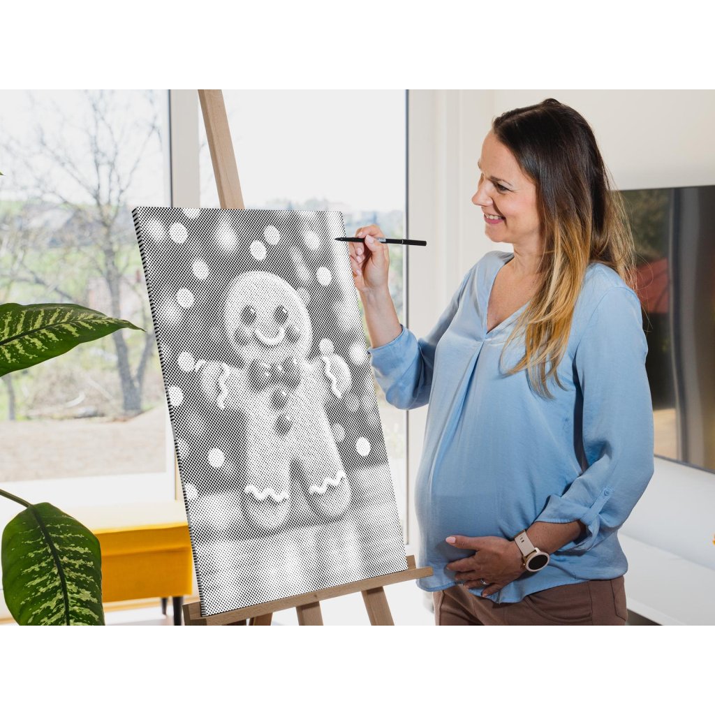 Hlavná úloha spočíva vo vypĺňaní koliesok rôznych veľkostí, predtlačených na plátne, farebnou fixkou. U niektorých stačí urobiť malú bodku, u väčších koliesok je skôr potrebné vyfarbovať. Chce to trochu trpezlivosti, ale keď sa vám stovky malých bodiek začnú pred očami premieňať na zvolený motív, budete mať chuť začať skákať od radosti. Keď urobíte poslednú bodku za svojím dielom, môžete obdivovať fotku premenenú na dvojfarebnú nádheru a rovno si ju zavesiť na stenu (ak si zvolíte obraz s vnútorným rámom).