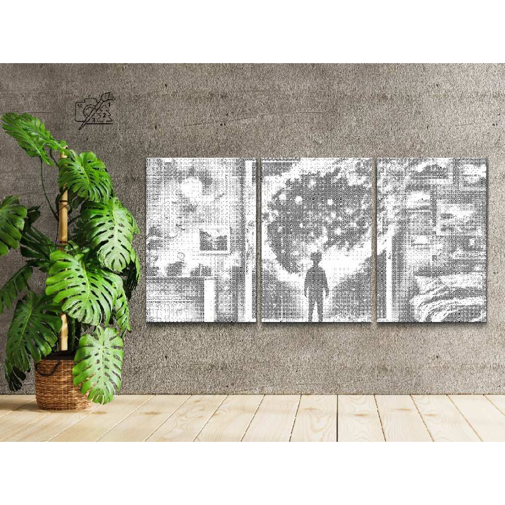 Hlavná úloha spočíva vo vypĺňaní koliesok rôznych veľkostí, predtlačených na plátne, farebnou fixkou. U niektorých stačí urobiť malú bodku, u väčších koliesok je skôr potrebné vyfarbovať. Chce to trochu trpezlivosti, ale keď sa vám stovky malých bodiek začnú pred očami premieňať na zvolený motív, budete mať chuť začať skákať od radosti. Keď urobíte poslednú bodku za svojím dielom, môžete obdivovať fotku premenenú na dvojfarebnú nádheru a rovno si ju zavesiť na stenu (ak si zvolíte obraz s vnútorným rámom).